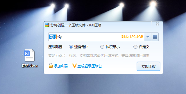 我们可以在电脑上右键点击文件,然后选择【添加到压缩文件】,这时候我们可以根据自己的需要对【压缩配置】进行设置,然后对点击【立即压缩】就可以了。