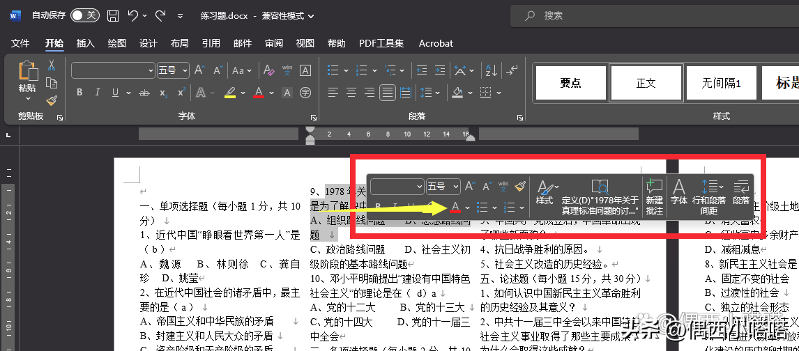 因为修改word字体颜色比较简单,就提供给小伙伴几种不太一样的方式,有的是本质不同,有的是操作路径方法不同。