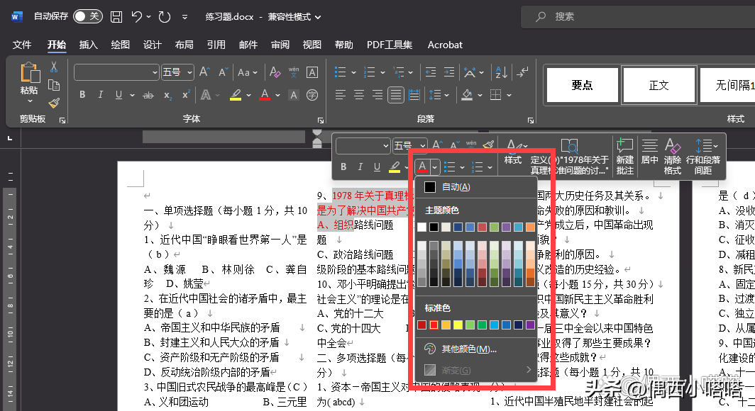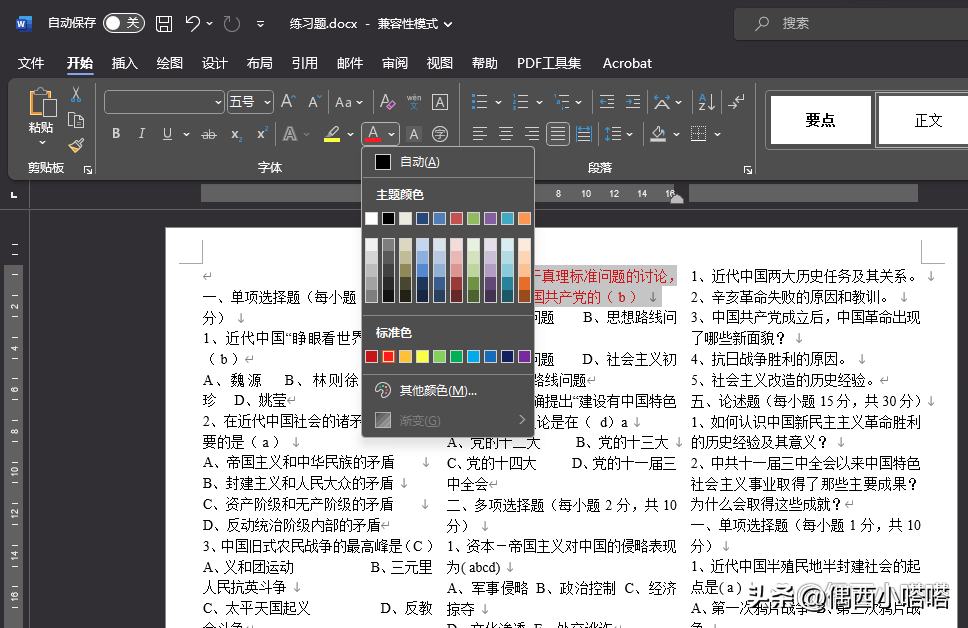 因为修改word字体颜色比较简单,就提供给小伙伴几种不太一样的方式,有的是本质不同,有的是操作路径方法不同。如果你喜欢我的分享,或者有更有趣的方法,欢迎一起交流。