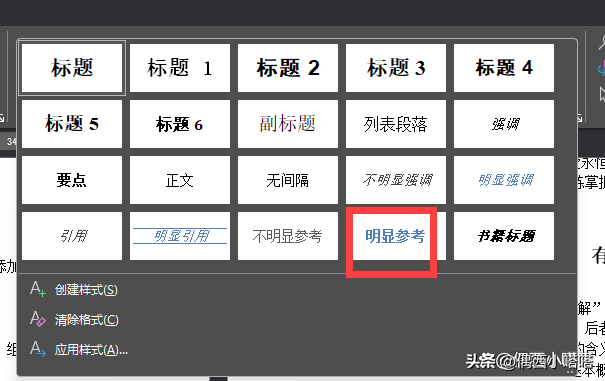 2、点击下拉里,可以选择已经颜色的样式,如果没有,也可以自行创建带颜色的样式。这种方式,在本文档中可以反复使用。如果创建样式可以戳这个视频3分58秒位置:Word文档格式调整设置与自己创建