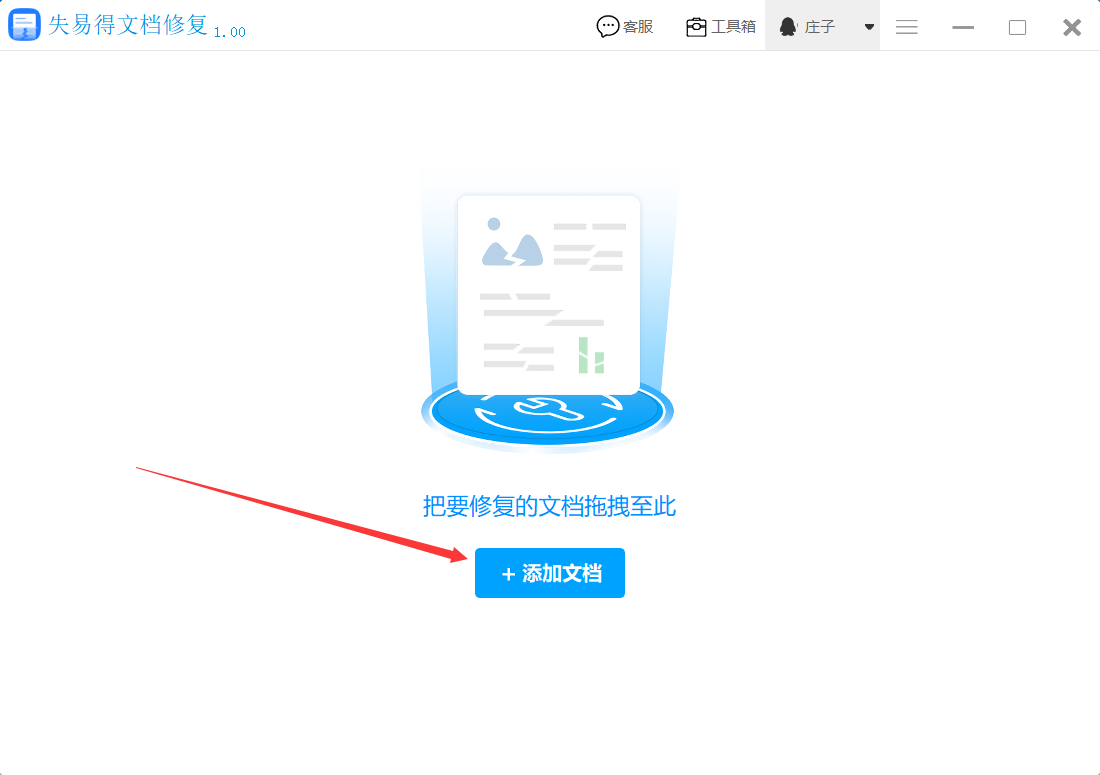 首先,你需要在官网下载安装失易得文档修复软件。安装完成后,启动软件。单击添加文档按钮,将损坏的word文件添加到软件中。