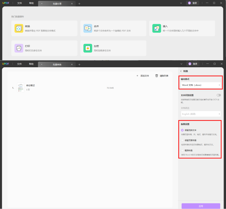 这款软件可以轻松实现高效无损格式转换,下面以大小70.4MB的PDF文档为例: