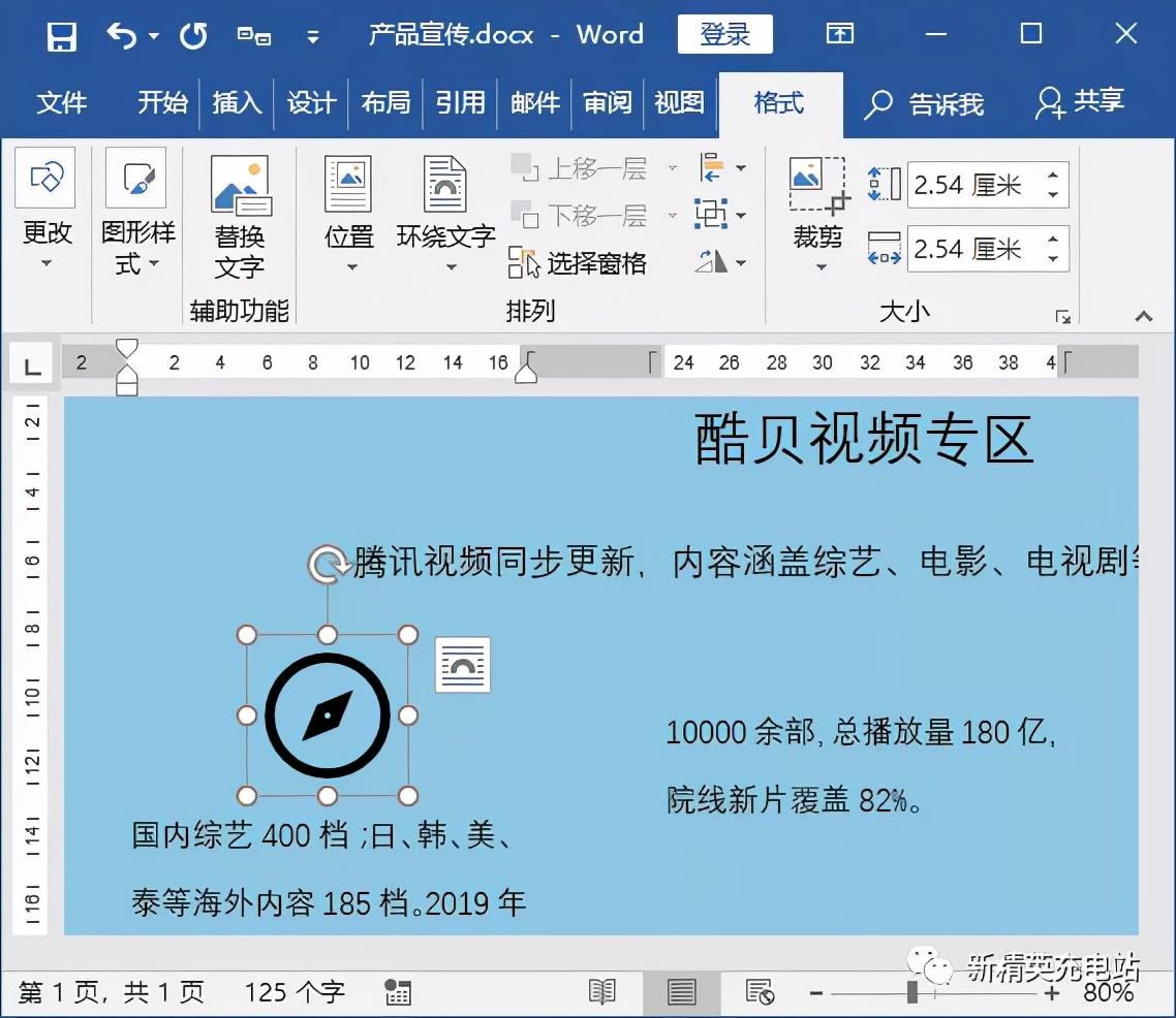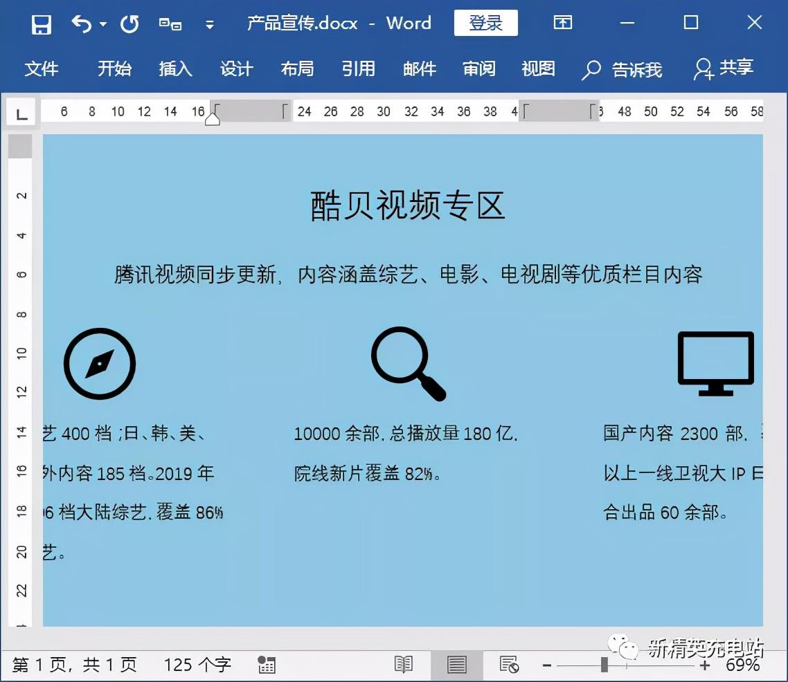 例如,对“产品宣传%20.docx”文档中图标的颜色和阴影效果进行设置,具体操作步骤如下。