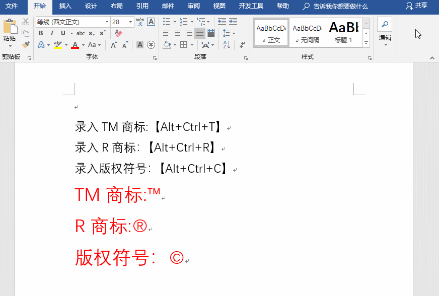 录入TM商标:【Alt+Ctrl+T】