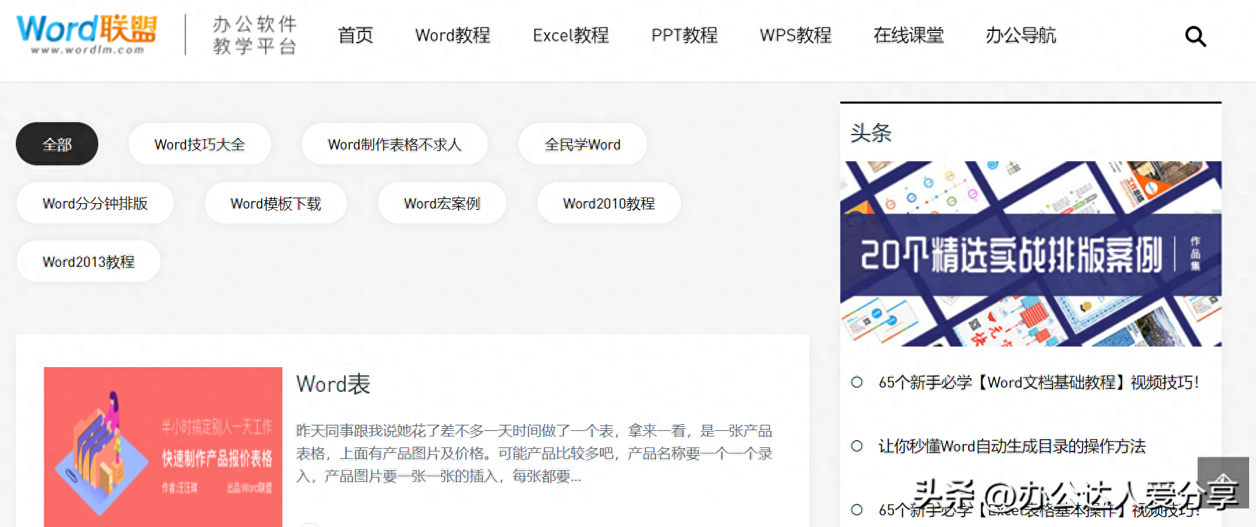 这里提供关于Word的所有内容,Word模板、Word图文和视频教程等。除了Word外,还有Excel教程、PPT教程、WPS教程以及办公导航等分类。