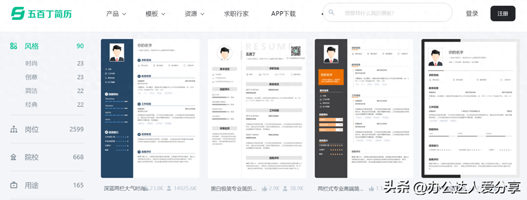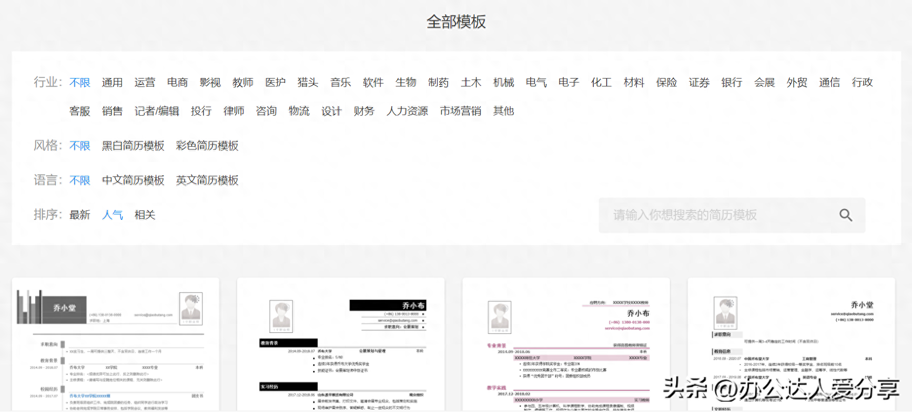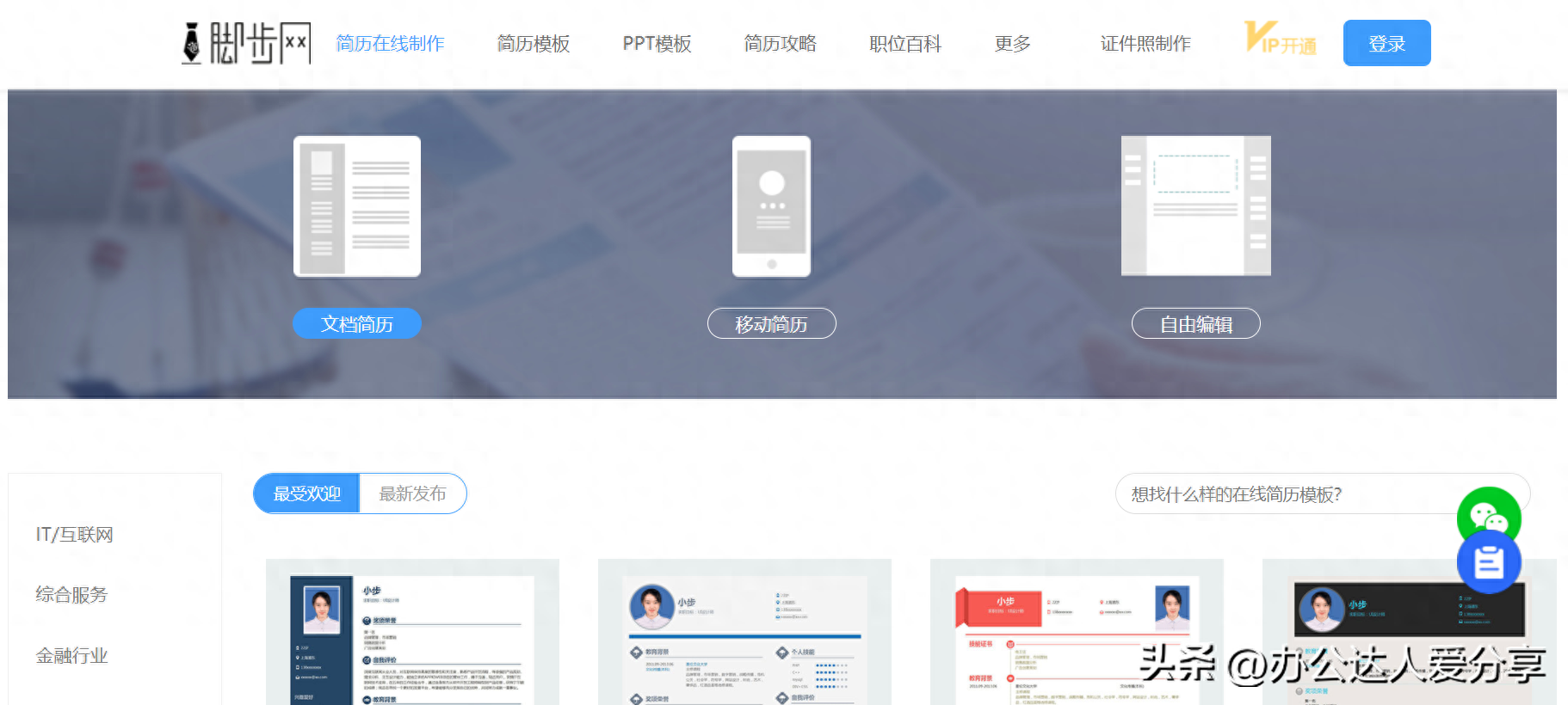 一个免费的在线简历制作平台,同样提供各种各样的简历模板,直接套用就可以了。包含常规简历模板、表格简历模板、创意简历模板、英文简历模板等。
