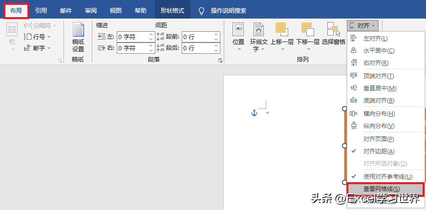 1. 选择菜单栏的“布局”-->“对齐”-->“查看网格线”