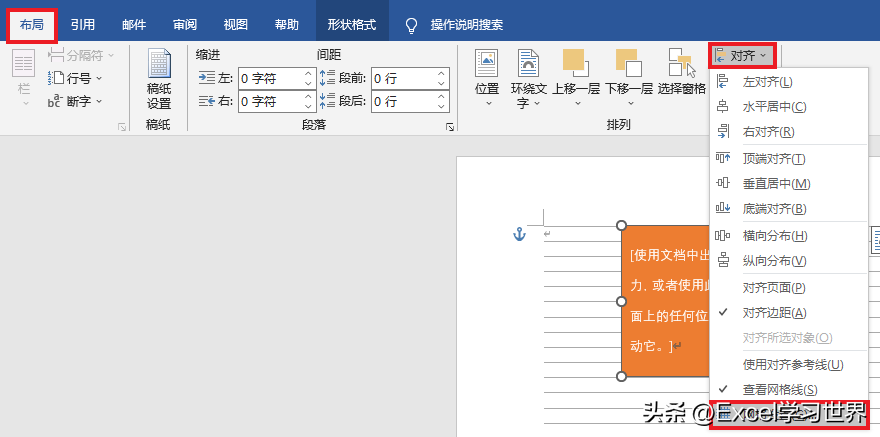 7. 选择“布局”-->“对齐”-->“纵向分布”