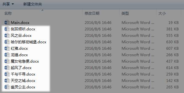 保存之后,再去看文档所在文件夹,就多了10个以电影名称(2级标题)命名的子文档。