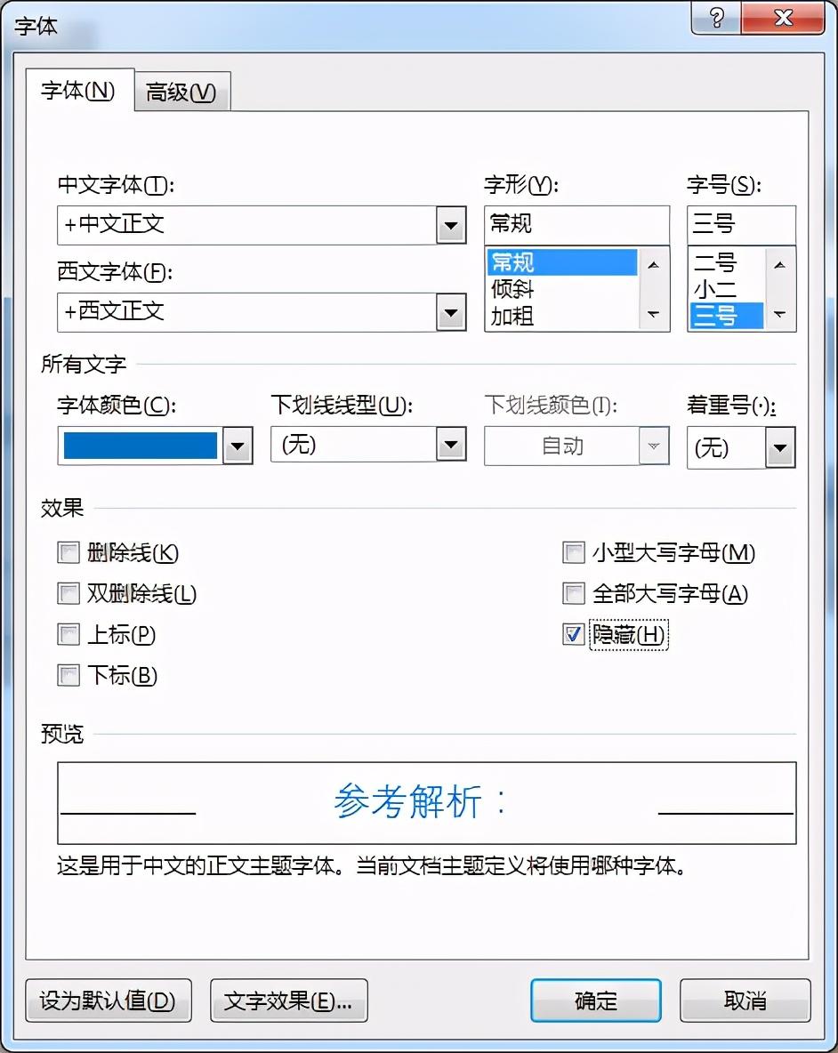 选中所要隐藏的文字,右击,在弹出的菜单中单击“字体”命令,在打开的对话框中,勾选“隐藏”即可。