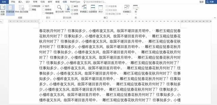 处理长文档时总会有这种痛苦:一长段文字鼠标滑了好几圈,但前面的内容已经忘了,然后再返回去看,后面又忘了,反反复复,时间都浪费在了鼠标上。这时,Word的屏幕拆分功能就可以有效解决这个问题,视图->拆分,然后把想看的内容拆分到另一块区域。