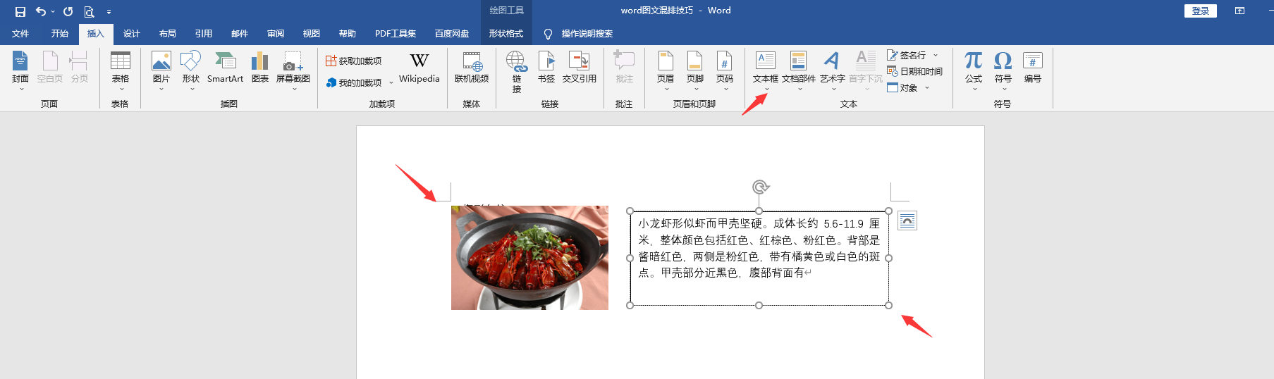 メ大家请看范例图片,word文档图片混排,为了布局轻松常常采用文本框添加,方便对齐插入。メ