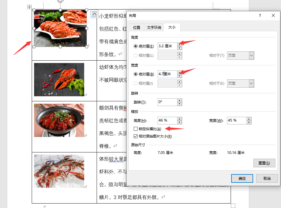 メ依次插入图片,点击第一张图片——格式——大小——输入合适的高度宽度,取消勾选锁定纵横比。メ