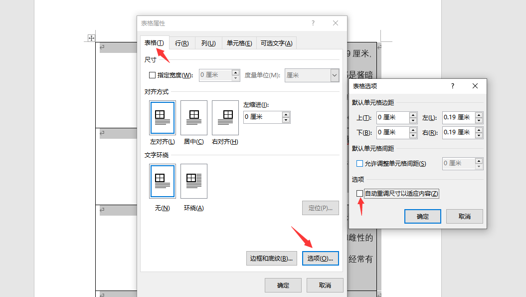 メ表格选项——取消勾选自动重调以适应内容。メ