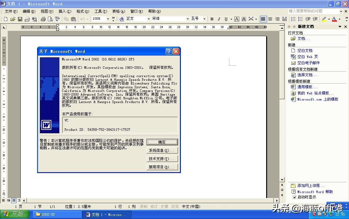 根据相关文献记录,这个版本中,最大的改进在于它的帮助系统。小编却觉得,它的界面,比2000要好看的许多。例如:全新的任务窗格,把过去常用的功能,改进优化后集成到了一起,看着界面更加的紧凑规整。另外,这个恼人的小助手也不见了(默认关闭),给本来就不大的屏幕空间提供了更多的可视空间。