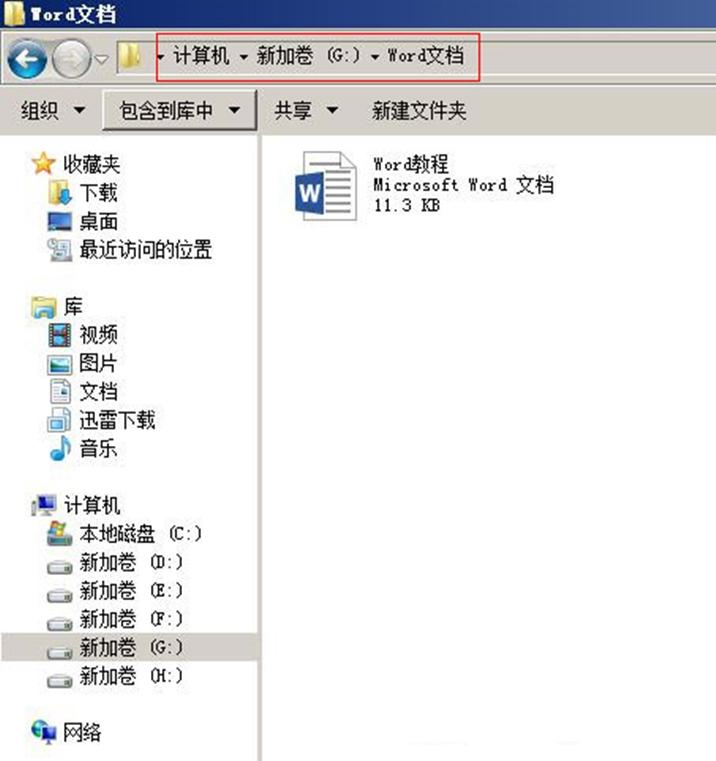 1、从桌面或“开始”菜单中打开“计算机(或我的电脑)”,定位到保存 Word 文档的文件夹,如图4所示: