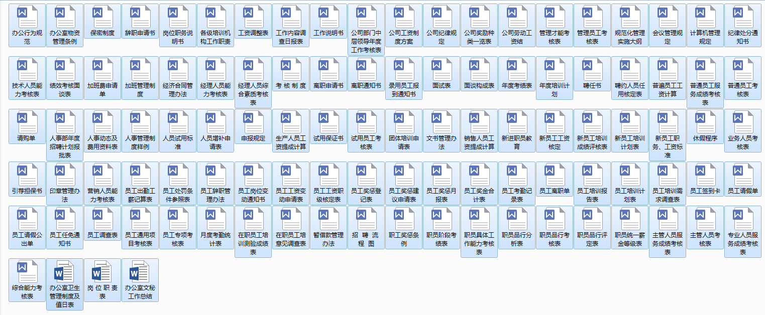 大家请看范例图片,压缩包文件夹包含104张办公室表格,文档。