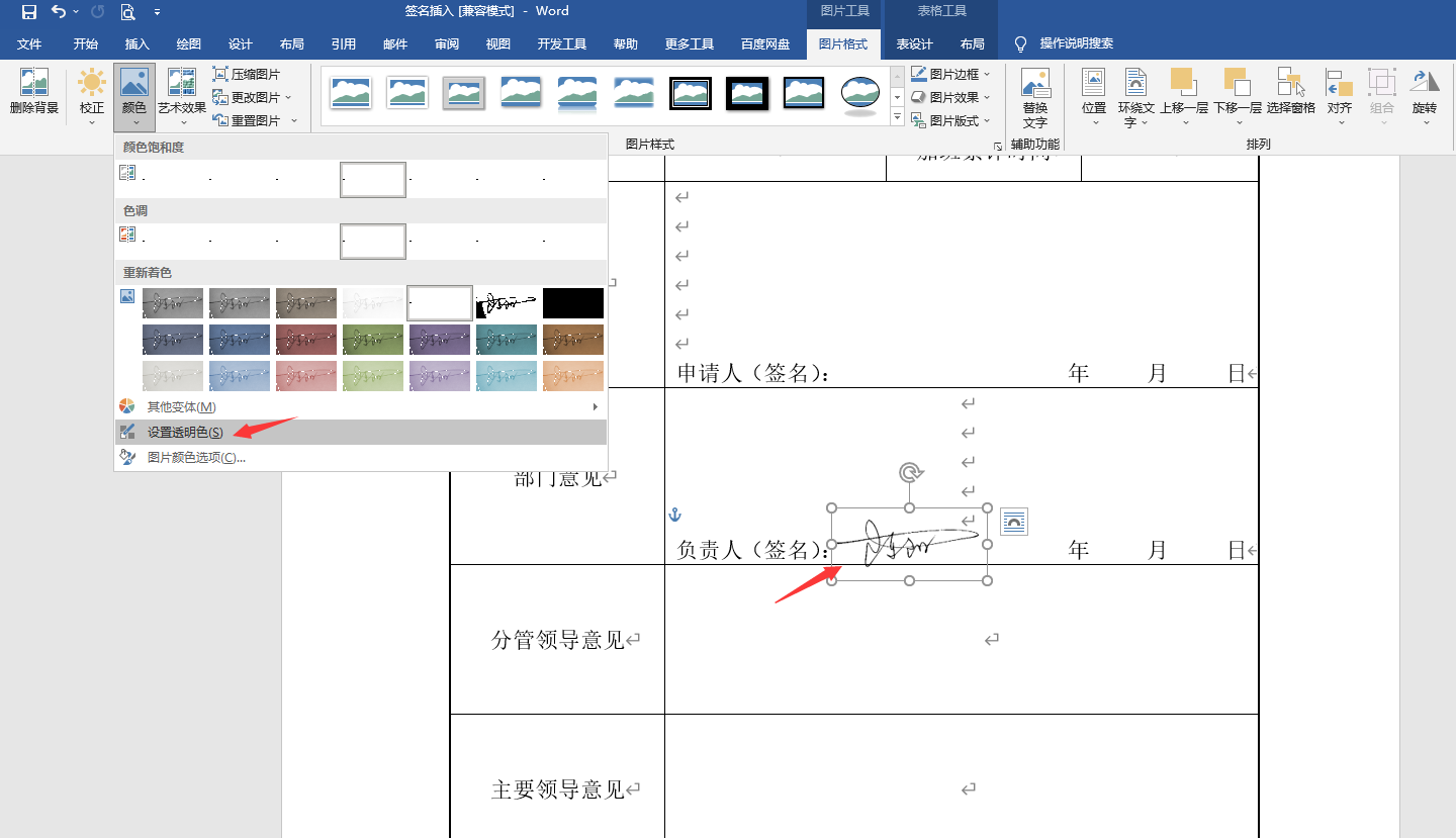 メ再点击颜色——设置透明色,把签名背景的灰色点一下,设置为透明。メ
