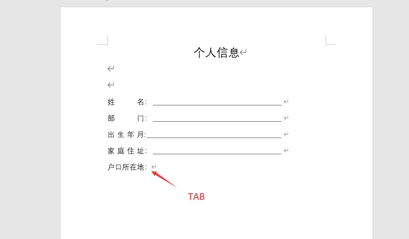 メ在每一行的冒号后面按下TAB键,自动添加等长下划线。メ