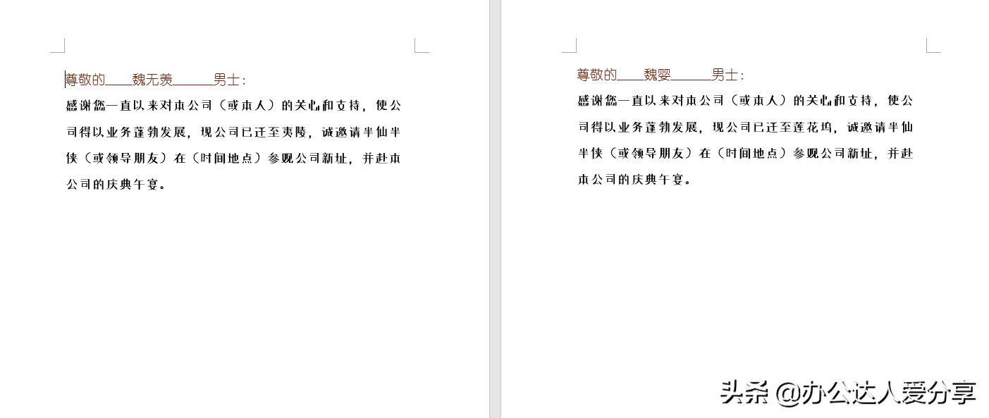准备一份邀请函模板,将源数据(需要邀请的人)整理到excel中整理出来,内容按姓名、性别、职务、单位、通讯地址等字段对邀请人信息进行登记。