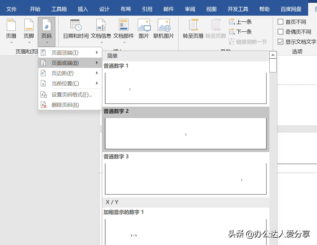 双击Word文档底部,进入页眉页脚编辑状态,点击【页码】-【页面底端】,选择一个页码样式就可以了,设置完成后,鼠标双击空白处完成退出编辑。页码将会自动更新。