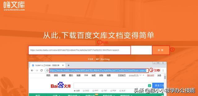 1、复制百度文库文档链接,打开嗨文库网址,在搜索框中粘贴并点击【获取】按钮。