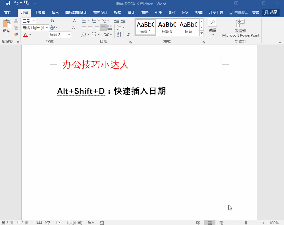 有时候我们在使用Word的时候,需要记录一下当天的时间,这个时候就可以直接通过这一快捷键:【Alt+Shift+D】来输入了。