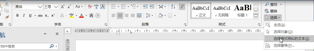 进行多文字编辑时,可能会设置一级标题(快捷键ALT+1)、二级标题(快捷键ALT+2)、三级标题(快捷键ALT+3),我们可以直接通过快捷键进行标题格式设置,这种方式方便快捷,而且还有更重要的一点好处就是:批量进行同种标题格式的设置与修改,举个例子:在进行一级标题的设置时,将光标放在任意一个一级标题中,然后选择菜单栏中的开始——选择——选择格式相似的文本,这样,所有的一级标题都被选中,这样可以进行批量操作(PS:必须所有一级标题的格式要一模一样,因为“选择格式相似的文本”工具只能选择同格式的字体)二级标题、三级标题以及图表标题的格式也可以,只要进行大量修改的文本,都可以用这种方式。
