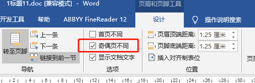 奇偶页不同设置