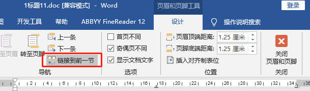 取消链接到前一节工具