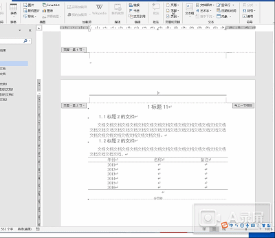 双击页面上方,可以快速进入页眉的设置。但是页眉的设置有多种形式,下面我们主要进行常见的几种形式进行说明。