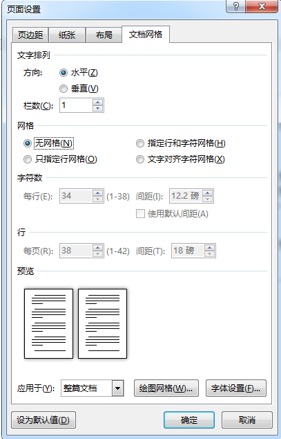 文档网格选择无网格,并应用于整篇文档