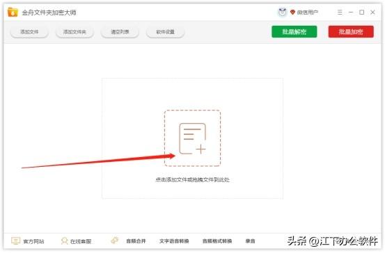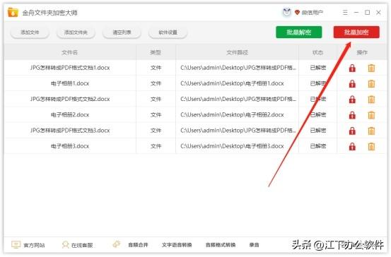 一、首先,在电脑上打开第三方加密工具,然后将桌面的word批量拖拽到以下位置;