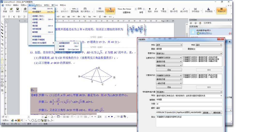 题型多样、属性标签齐全,创建简单自由。联网提交即可自动拆分入库。