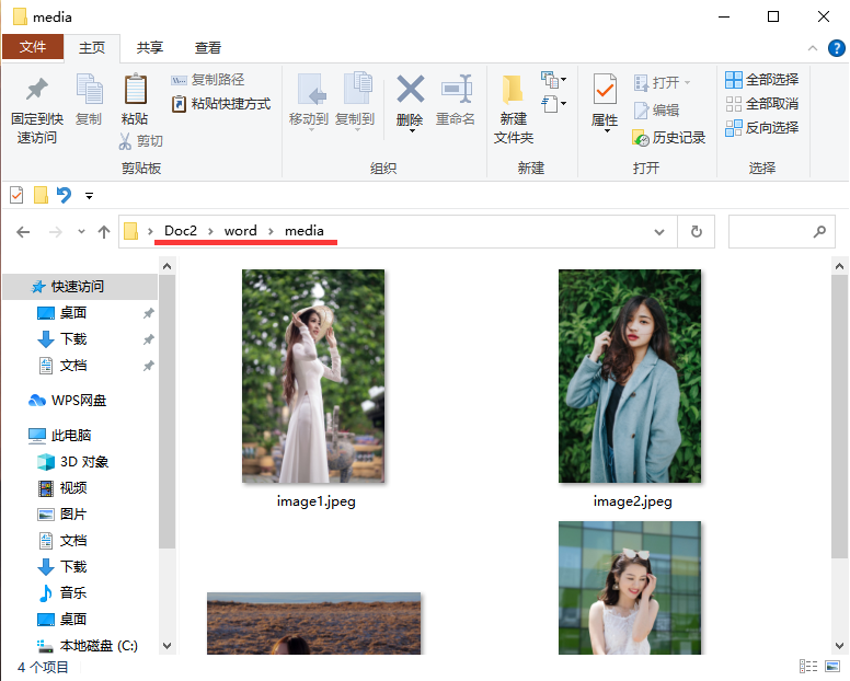 复制Word文件,将文件后缀改为【.rar】,解压这个文件夹,依次点开【word】-【media】,就可以看到Word里的所有图片啦。