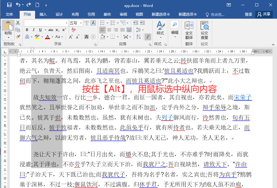 平常在编辑Word时,用鼠标选中文字只能横向选择,当我们需要调整、修改段落开头的文字时,其实纵向选中文字,快速调整文本内容哦。