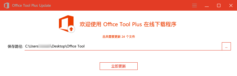 首先登录到Office Tool Plus的官方网站下载它的最新版本(https://otp.landian.vip),第一次运行该工具会弹出一个对话框,要求用户设置该工具的下载路径,系统通常会自动设置为系统桌面,用户只需要点击"立即更新"按钮(图1),就可以下载该工具所需要的相关文件。