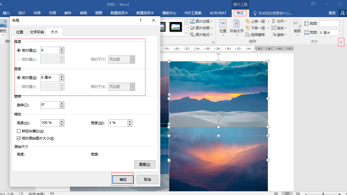 输入图片高度和宽度,点击【确定】就可以统一图片大小啦。