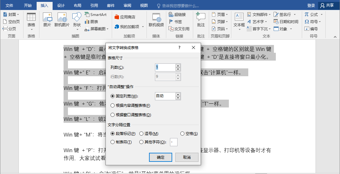 3、文字转换成表格