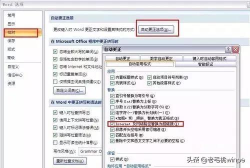 输入网址时不想要超链接?我们依次按照“文件——选项——校对——自动更正选项——键入时自动套用格式”点击,最后取消“Internet及网络路径替换为超级链接”的勾选即可。