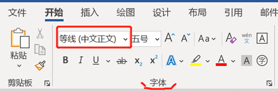 3、从《字体》工具框中选择左上的下拉列表,点击右侧向下的箭头《v》,就会弹出一个列表。