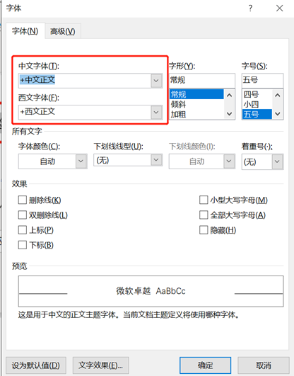 4、点击《+中文正文》右侧的向下的箭头《v》,即可设置汉字的样式,点击《+西文正文》即可设置除汉字以外的其他字符的样式(如:英文、数字等)